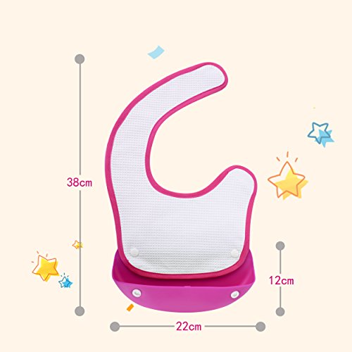 Safe&Care ベビービブ 食事用スタイ 3枚セット ポケット付き ベビー 赤ちゃん 100%綿 360°回転可 お食事用防水ビブ よだれかけ 洗濯機で洗える ピンク