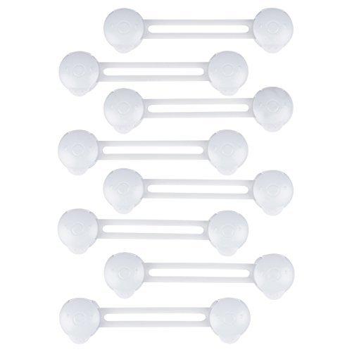 MULTI-PURPOSE: Secures cabinets, drawers, appliances, toilet seats, trash cans, pet food containers and more. Keep your little ones safe from danger.;EASY TO INSTALL - NO TOOLS NEEDED - INSTALLS IN MINUTES: Strong 3M adhesive holds the lock securely in place and can be removed easily without damage to surfaces. Infographic included.;FLEXIBLE DESIGN: Flexible strap allows these locks to be installed on flat surfaces as well as around corners, and on cabinets with or without knobs.;EASY ACCESS FOR ADULTS: Strong, toddler-proof latching system keeps children safe yet allows adults to easily latch or open the lock with just one hand.;LIFETIME 100% MONEY BACK GUARANTEE: We use only top quality materials which is why we're confident that you'll be pleased with our safety locks. If you're not, you're backed by our Lifetime 100% money back guarantee.