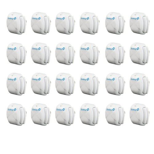 Includes 24 child resistant outlet plugs;Two touch press and lock for optimum security;Removable and reusable