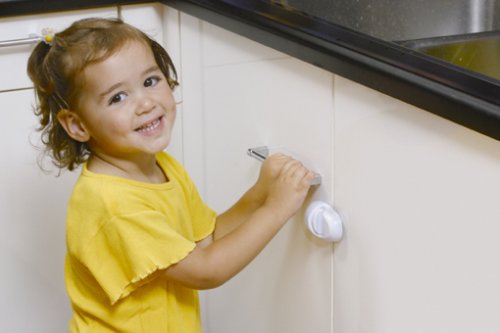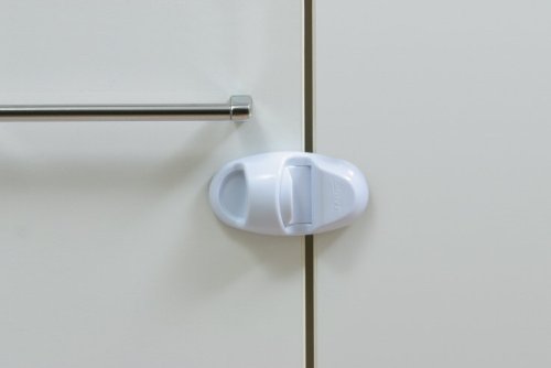 The Safety 1st Adhesive Cupboard Lock is a self adhesive cupboard lock that will help prevent toddlers & children accessing cupboards they shouldn't. Keeps the contents safe and little fingers at bay. It is easy to fit and needs no screws! Ideal for cupboards without handles.