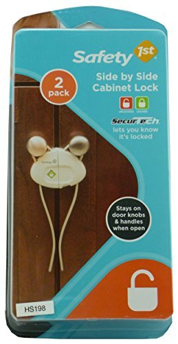 Safety 1st;Side by Side Cabinet Lock;SecurTech Lets You Know It's Locked;Stays on Door Knobs & Handles When Open;2 Pack