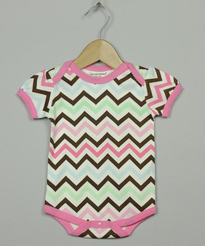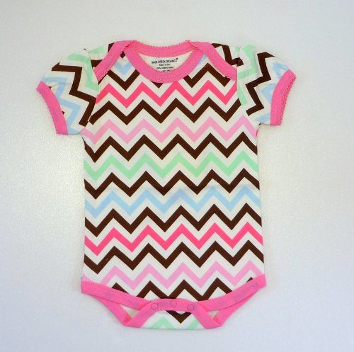 ラップショルダーボデイスーツ半袖 ジグザクピンク (3-6ヶ月(60~70cm))
