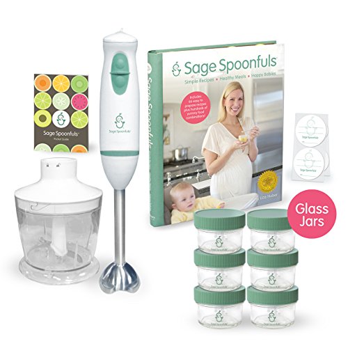 Make the most delicious and nutritious food for your baby--laying a strong foundation for a lifetime of healthy choices;Fun and easy In less than 30 minutes, make and stock your freezer with 2 weeks of yummy food. And, most foods stay fresh in frig for 3 days and up to 3 months in the freezer.;Guids you through every step and gives you all the tools needed, so you will not feel intimidated. Even if you have never cooked You'll be making yummy food with real, fresh foods, such as carrots, sweet potato, avocado and so much more;Includes: Immersion blender/food processor, Sage Spoonful's 227pg recipe and guide book, 6 4oz glass storage jars with screw on lids, Sage Spoonful's pocket guide. If bought separately, this is a $90 sugg retail value;Created and written by Liza Huber, who wanted a convenient, quality homemade baby food system after her first child was born. Follow SageSpoonfuls for lots of new recipes for baby and growing family