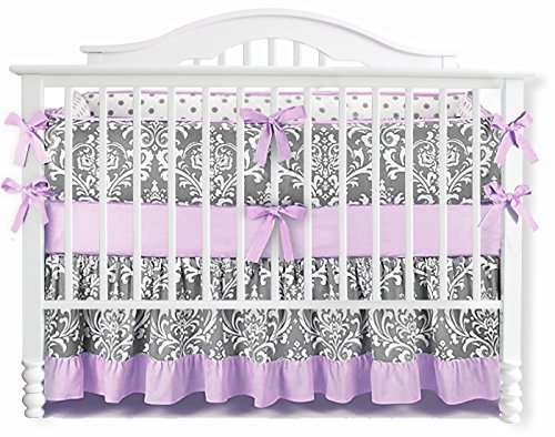 7ピースセット用フリル付きグレーPupleフローラルベビーベッド保育園用フリル付きベッドセットシート