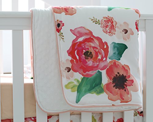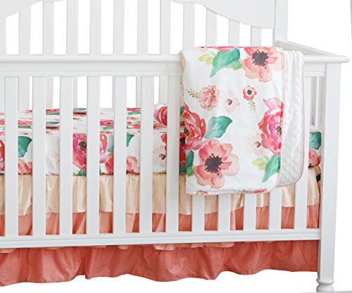 3個セットボーホーフローラルフリル付きベビーMinky毛布水カラー、ピーチフローラルNursery CribスカートセットベビーガールズCrib Bedding オレンジ