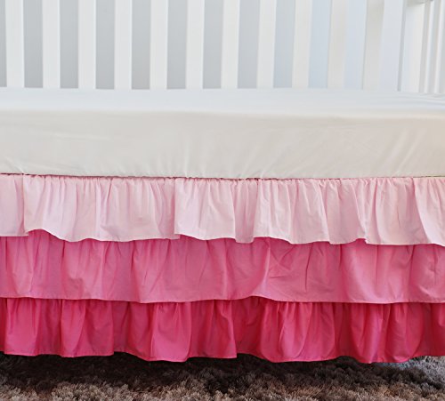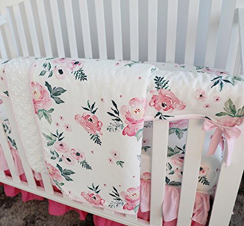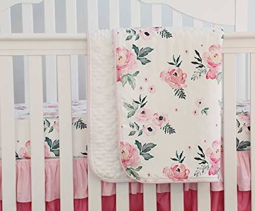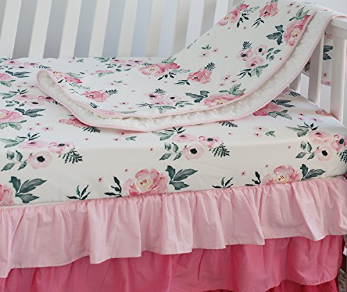 ピンク花柄フリルベビーMinky毛布水カラー、ピンクフローラルNursery CribスカートセットベビーガールズCrib Bedding 3 pieces set ピンク