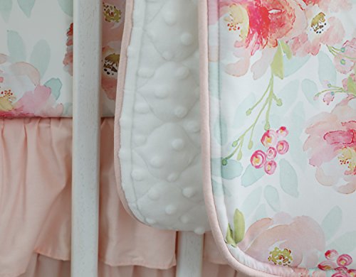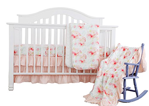 sahaler BlushミントGirlsベビーベッド寝具セットBohoボヘミアン花柄保育園ベビーベビーベッド寝具ミニベビーベッドシート花柄フリル付きスカートCribレールカバー 3 pieces set