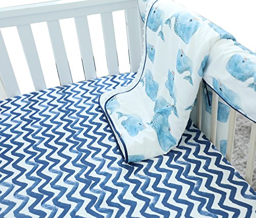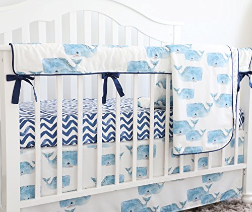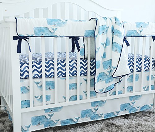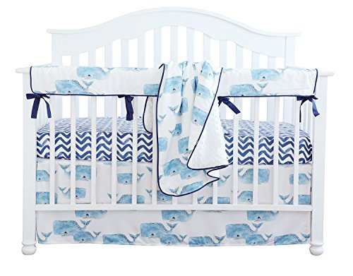 Baby Boyベビーベッド寝具セットWhale Nursery CribスカートセットMinky Blanket Navy Cribベビーベッドシートレール寝具セット4ピースセット 4 pieces set ブルー