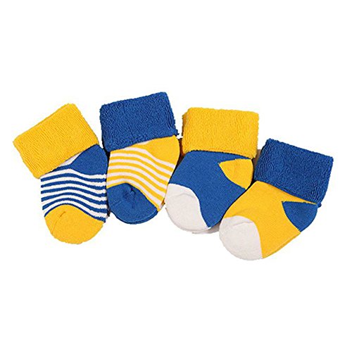 子供ソックス可愛い赤ちゃん ベビー 新生児 柔らかい秋冬靴下外用ムール用お祝い出産祝い保温靴下4足セット (M, イェロ) [並行輸入品]