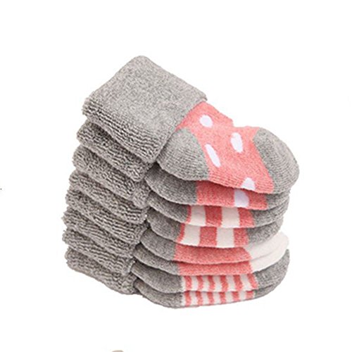 子供ソックス可愛い赤ちゃん ベビー 新生児 柔らかい秋冬靴下外用ムール用お祝い出産祝い保温靴下4足セット (M, ピンク) [並行輸入品]