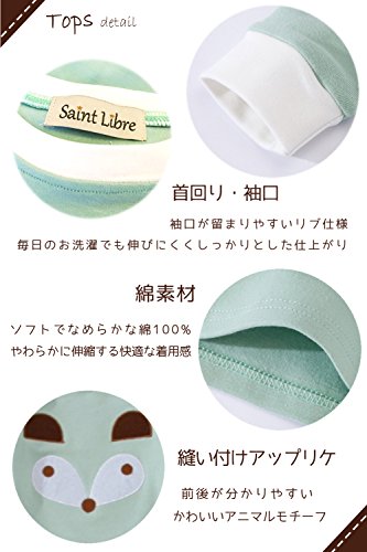 (サンリブレ) Saint Libre 長袖 パジャマ 上下 かぶり アニマル アップリケ キッズ ミントグリーン 110