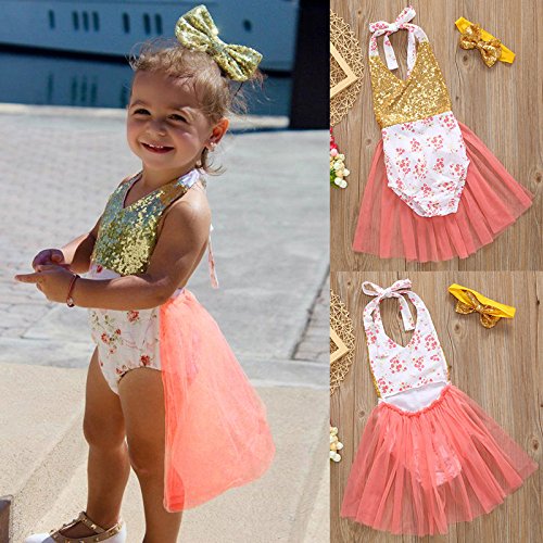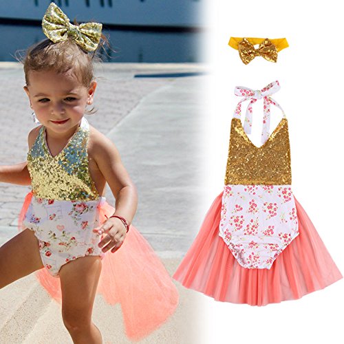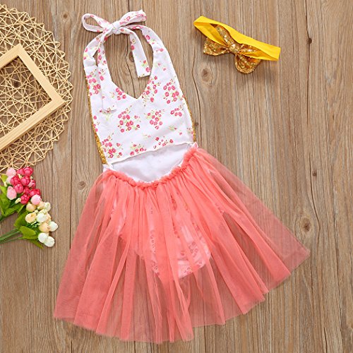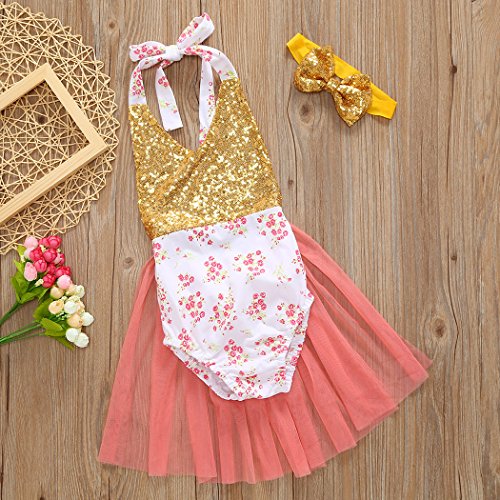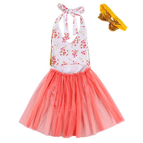 2点セット サクララ(Sakulala) チュチュスカート スパンコール 花柄 ロンパース ホルターネック シャツ ヘアバンド付き チュールスカート 女の子
