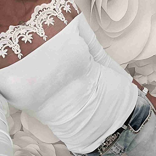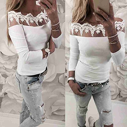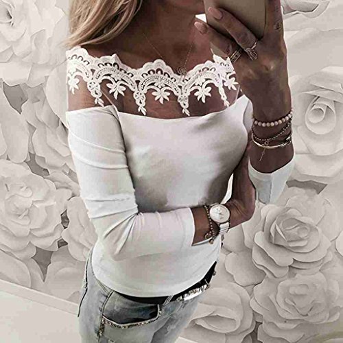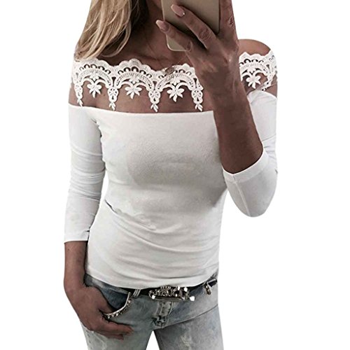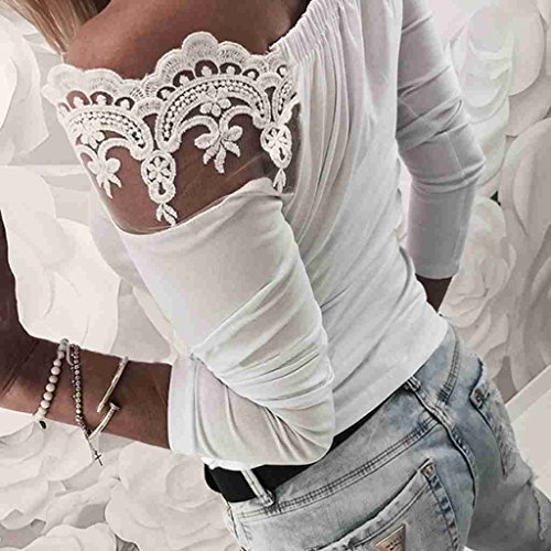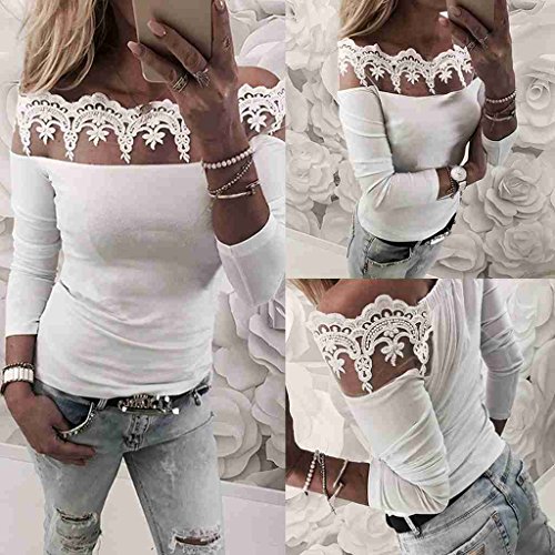 サクララ(Sakulala) レディース オフショルダー シャツ 胸元 トップス 肩だし レース 長袖 カットソー スリム セクシー 無地 ホワイト