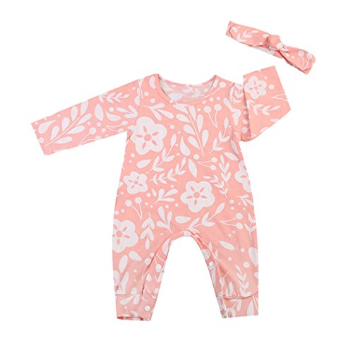 サクララ(Sakulala) ベビー ロンパース ヘアバンド付き 長袖 花柄 Tシャツ 秋 冬 キッズ 肌着 ボディスーツ 満月/出産祝い/プレゼント 0-24ヶ月 男の子 女の子