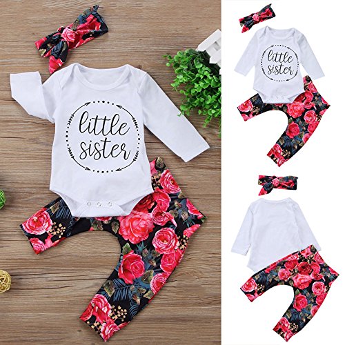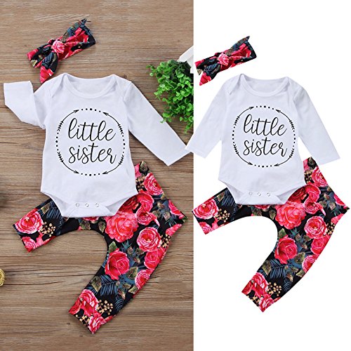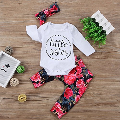 サクララ(Sakulala) ベビー服 上下セット Tシャツ 長袖 牡丹 可愛い ヘアバンド ロンパース パンツ セットアップ 0-18ヶ月 男の子 女の子 黒