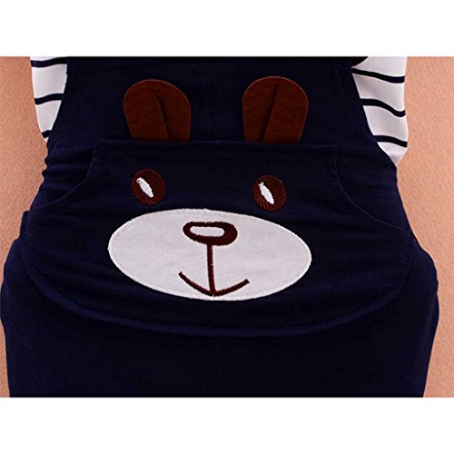 ベビー服 女の子 男の子 上下セット キッズ 赤ちゃん 丸首 ストライプシャツ+オーバーオール ストライプクマ 長袖 春秋 出産祝い