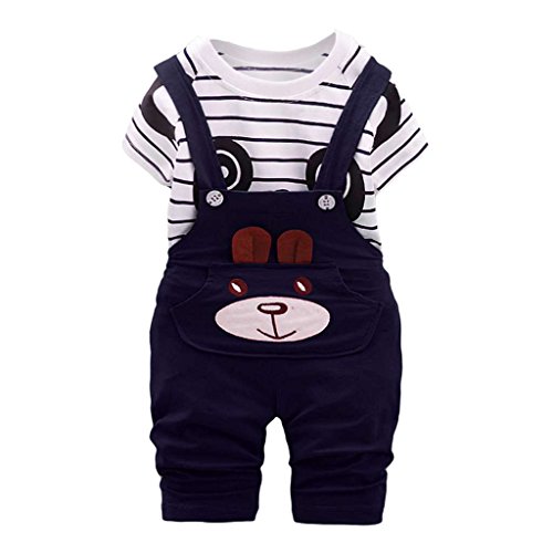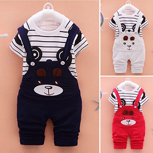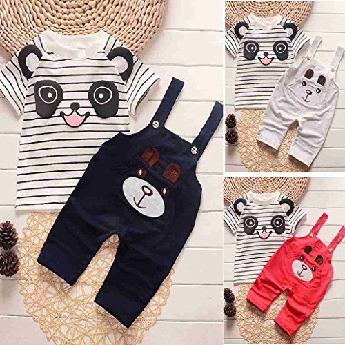 サクララ(Sakulala) 2セット ベビー服 セットアップ サロペット オーバーオール Tシャツ 可愛い パンダちゃん ストライプ柄 春夏 満月/出産祝い/プレゼント/旅行 /記念日