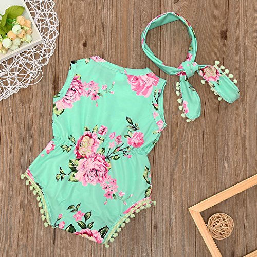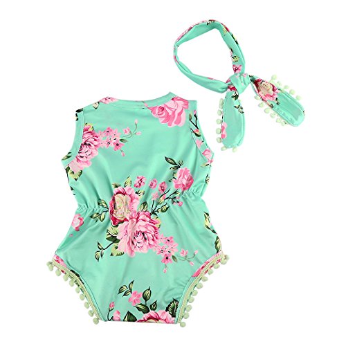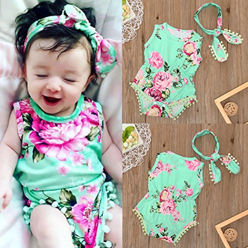 サクララ(Sakulala)2点セット ベビーロンパース ヘアバンド 子供服 花柄 プリント タンクトップ キッズ 足つき カバーオール ボディスーツ 肌着 女の子 ノースリーブシャツ 0~2歳 お着替え簡単 新生児 出産祝い 満月 プレゼント