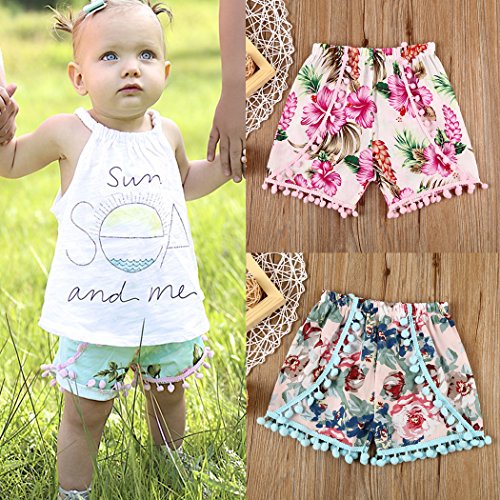 - 綺麗な花柄をプリントし、ボンボンを飾り、赤ちゃんの可愛さを演出できるショートパンツです。赤ちゃんは良い気持ちで夏を楽しみします。