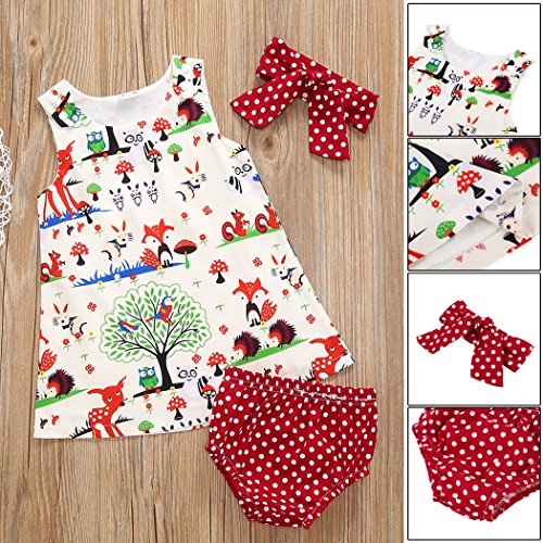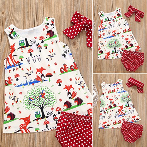 - 可愛い動物をプリントして、まるで小さい森林のようです。蝶結びのヘアバンドも水玉の下着もすべて赤くて、子供をひきつける魅力があります。