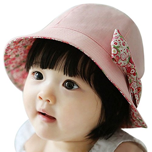 (サクララ)Sakulala ベビー 赤ちゃん 日焼け 日よけ 帽子 キャップ 子ども 子供 日差し UV コットン 綿 花柄 フラワー リボン 可愛い つば 付き お出かけ 紫外線 防止 ピンク