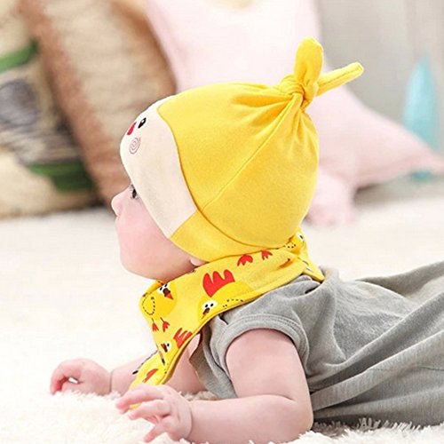 (サクララ)Sakulala ベビー 赤ちゃん 新生児用 帽子 ハット 角 付き キャップ と スタイ ビブ よだれ掛け 子ども 幼児 綿 女の子 男の子 2 点セット ひよこ