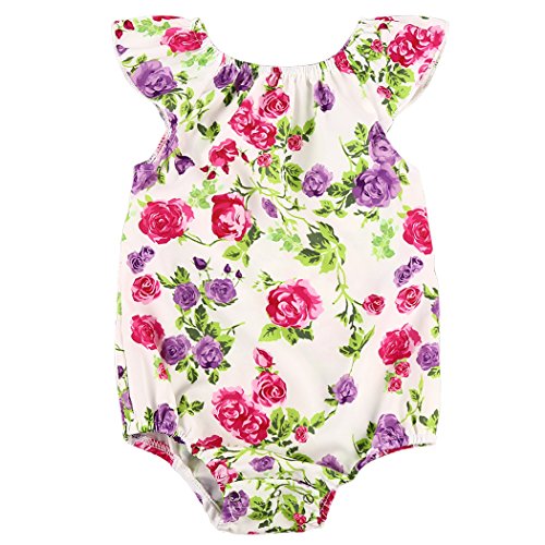 sakulala子供ロンパース 花柄 ローズ かわいい 肌着 ボタン付き ボディスーツ 赤ちゃん ベビー服 女の子