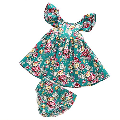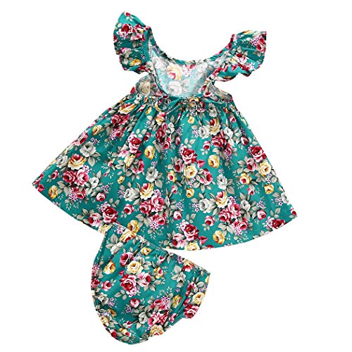 (サクララ)Sakulala ベビー ワンピース パンツ付き 花柄 ドレス スカート 2点セット 女の子 ガールズ 0-5歳 (110)