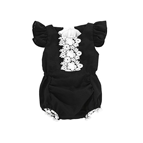 サクララ(Sakulala) かわいい人気なベビー服 子供服 ロンパース 女の子 レース フリル 夏 秋 パジャマ お着替え簡単 黒 新生児 歩行服 出産お祝い 記念日 プレゼント 0-18ヶ月
