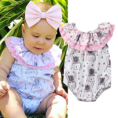 サクララ(Sakulala) ロンパース ベビー服 キッズ うさぎ柄 赤ちゃん ノースリーブシャツ 繋ぎ 連体服 ボディスーツ 新生児 幼児 出産祝い 女の子