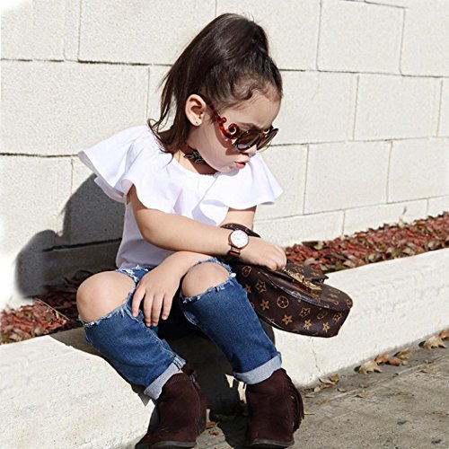 サクララ(Sakulala) ベビー服 子供服 上下セット オフショルダー ブラウス へそ出し 破れた ジーンズ 女の子 白 可愛い 夏 秋 スポーツ 運動会 旅行 記念日 セットアップ 12ヶ月-6歳
