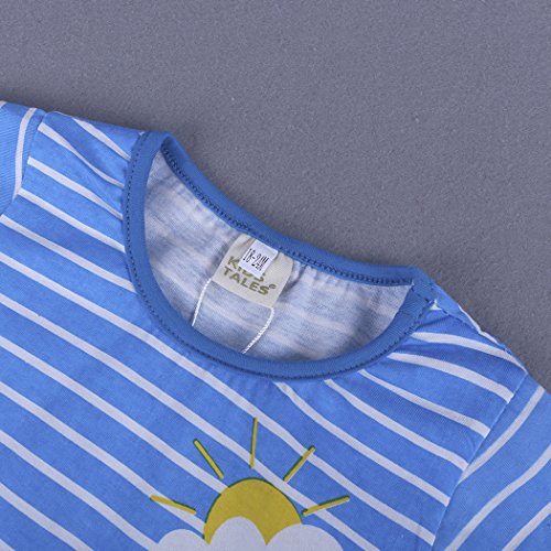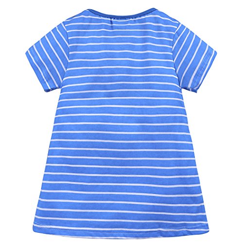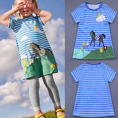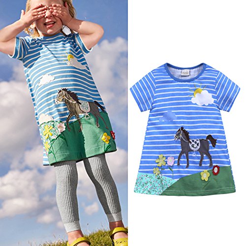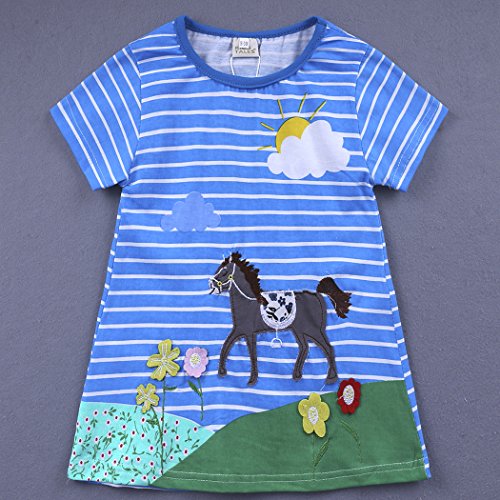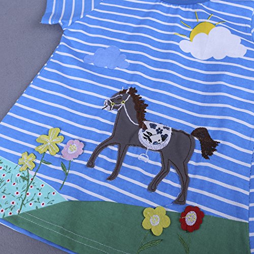 サクララ(Sakulala) ベビー服 女の子 ワンピース ストライプ柄 動物柄 馬 青 半袖 可愛い 夏秋 旅行 記念日 プレゼント 子供服 パジャマ 1-6歳