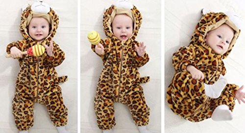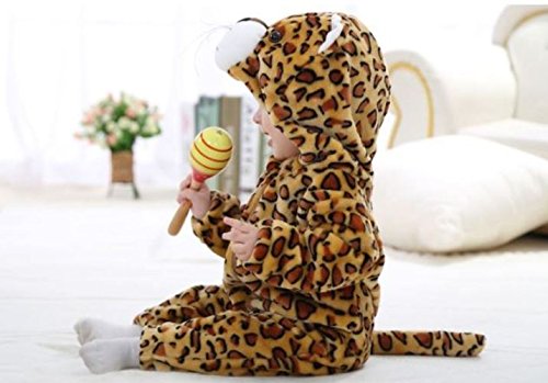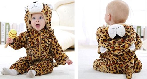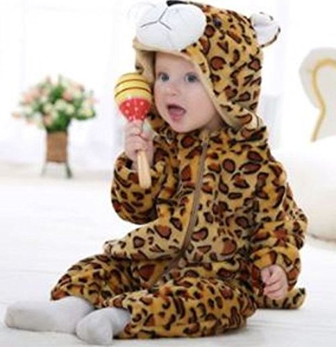 ベビー キッズ用 カバーオール フード付き アニマル着ぐるみ 春と秋 ロンパース オーバーオール 子ども服 防寒着 (80㎝【約4~12ヶ月】, ヒョウ)