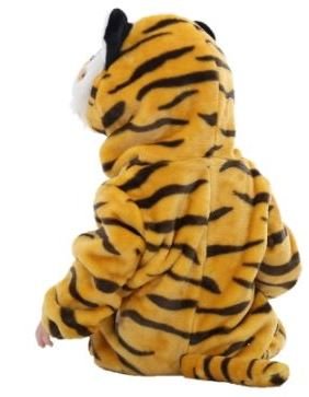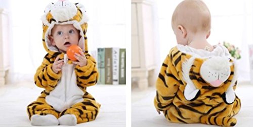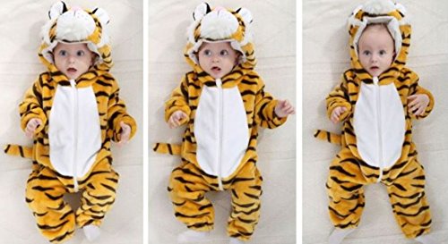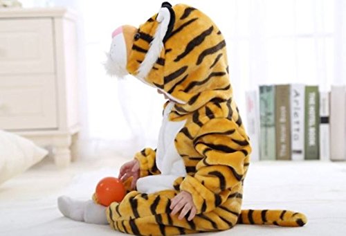 ベビー キッズ用 カバーオール フード付き アニマル着ぐるみ 春と秋 ロンパース オーバーオール 子ども服 防寒着 (90㎝【約13~18ヶ月】, タイガー)