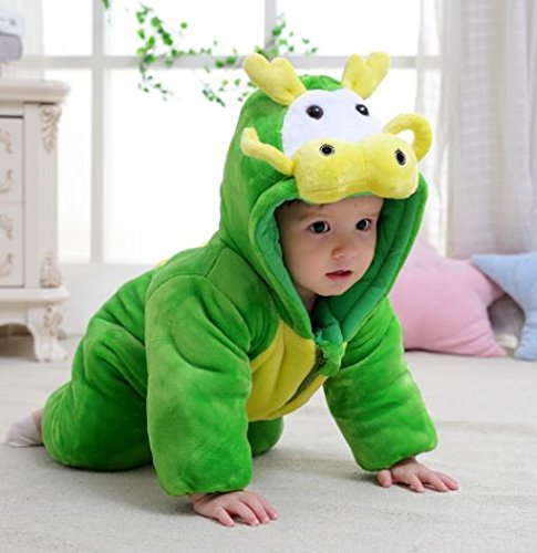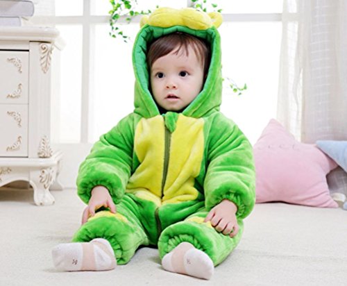 ベビー キッズ用 カバーオール フード付き 着ぐるみ ネマキ 冬 厚手 ロンパース オーバーオール 子ども服 防寒着 赤ちゃん着 (110㎝(25-36ヶ月), 緑 子ウシ)