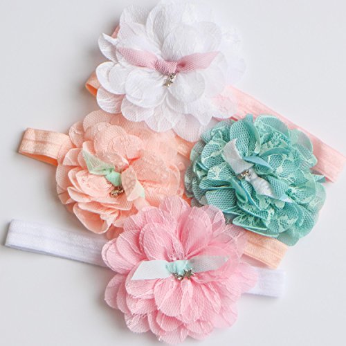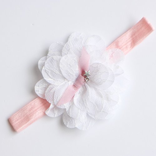【Sakurakofu】ベビー フラワー ヘアバンド 赤ちゃん 女の子 フォーマル 結婚式 記念写真 ハーフバースデー ニューボーン (ホワイト)