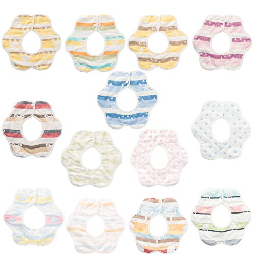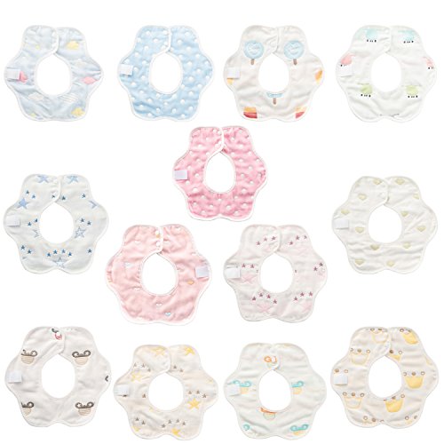 よだれかけ スタイ 赤ちゃん 綿100% 6重ガーゼ ベビービブ 360度回転 食事用 柔らかい かわいい 出産祝い 男の子 女の子 13枚セット
