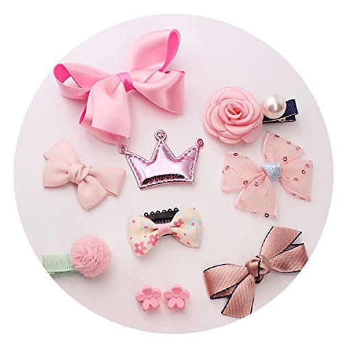 子供 ヘアピン ベビー ヘアクリップ アクセサリー 髪飾り 髪留め 10点セット リボン 花 王冠 蝶結び ドット柄 かわいい 女の子 赤ちゃん(ピンク)