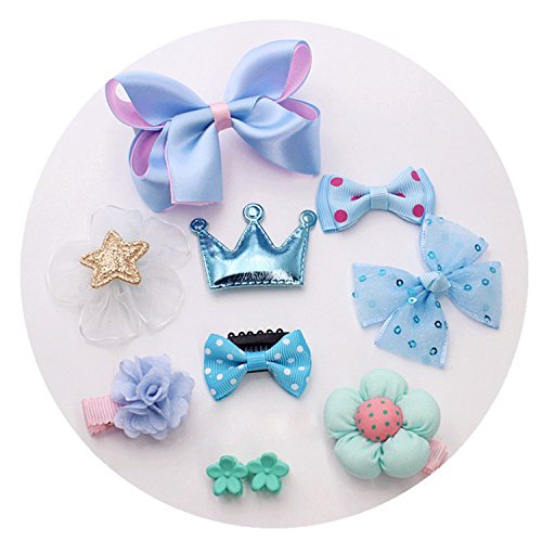 子供 ヘアピン ベビー ヘアクリップ アクセサリー 髪飾り 髪留め 10点セット リボン 花 王冠 星 蝶結び ドット柄 かわいい 女の子 赤ちゃん ブルー