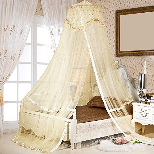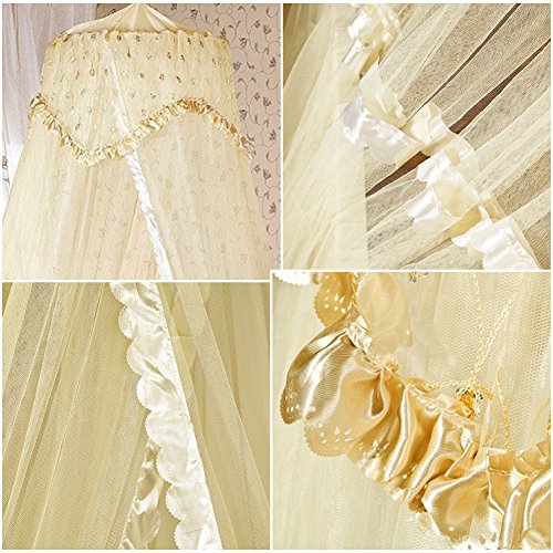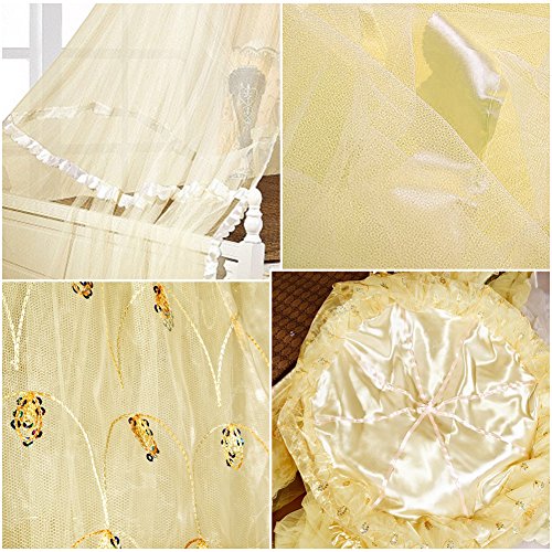 Samber Mosquito Net LuxuryドームプリンセスベッドネッティングHangingラウンドレースCanopyテントベッドルームの装飾寝具for Children Students イエロー Samber-123