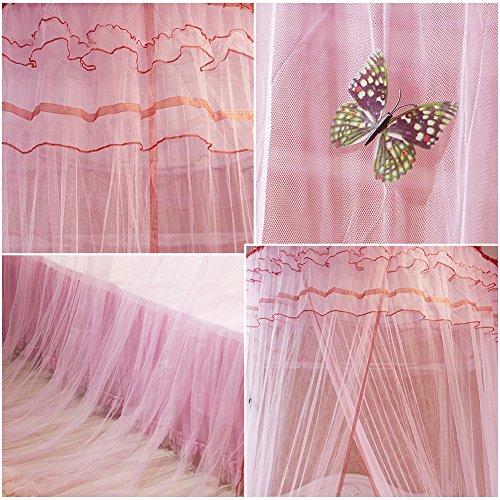SamberドームMosquito Net HangingラウンドLuxuryプリンセスBed Canopy Crib光バタフライレースベッドネッティングテントベッドルームの装飾 ピンク Samber-123