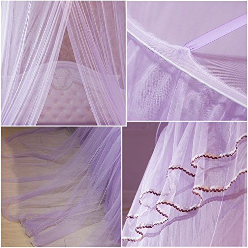 Samber Mosquito NetドームベッドネッティングプリンセスベッドHangingラウンドレースCanopyテント寝具for Crib学生 パープル Samber-123