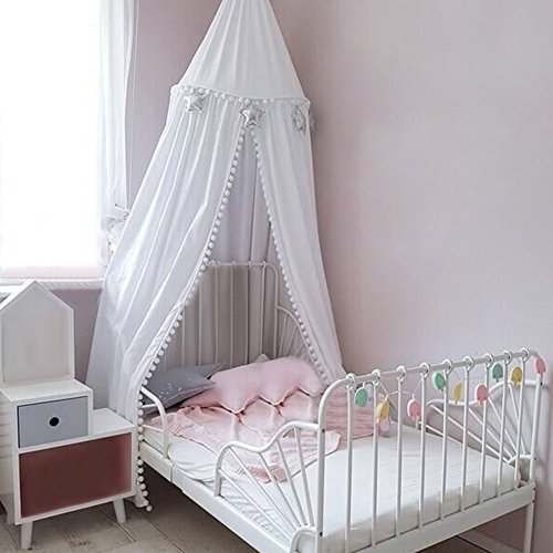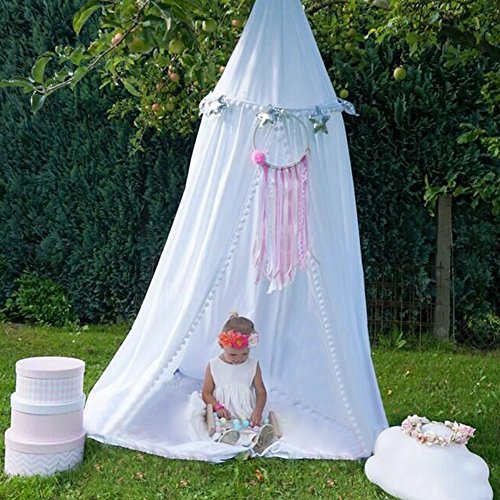 Samber Mosquito NetドームベッドキャノピーReading再生テント寝具子供子供の部屋装飾ラウンドコットンベッドMantle Baby Kids Games家 ホワイト Samber-123