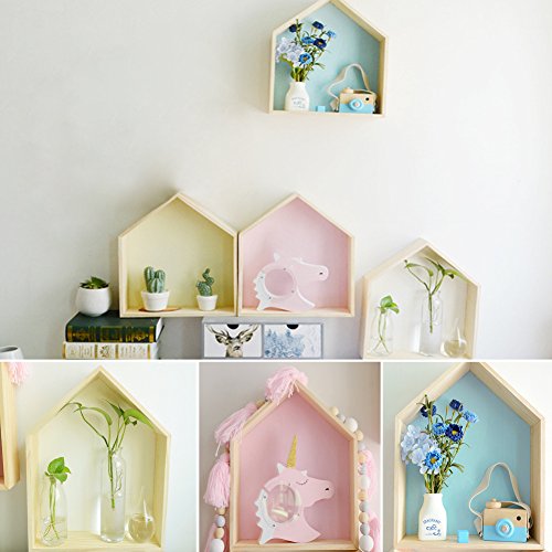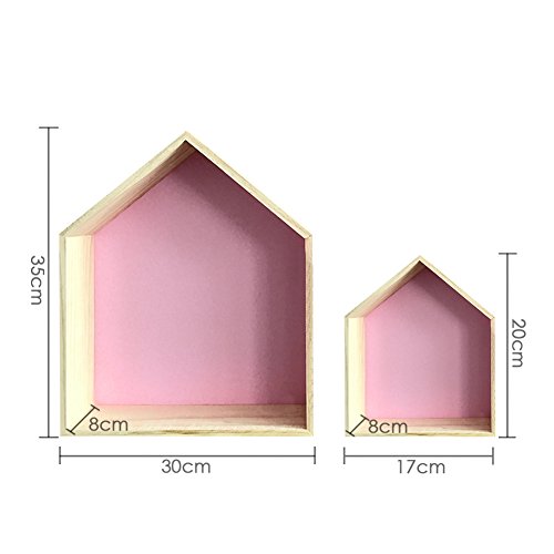 Samber Lovely木製house-shaped壁ストレージシェルフ子供の部屋のストレージラック壁マウントフローティングシェルフストレージボックスキッズ部屋ウォールシェルフ表示Hanging Shelf Nursery Room Decor ピンク Samber-123