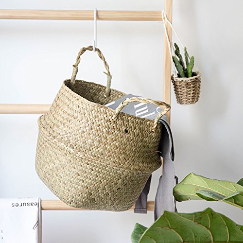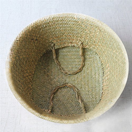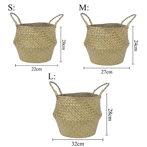 Samber手編み折りたたみ式植物花ポットナチュラルシーグラス編みバスケット玩具ストレージバスケットWoveningランドリーバスケット折りたたみ式ハンドクラフト織りベリーバスケットハンドル付き S Samber-123