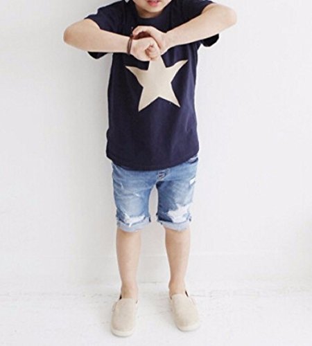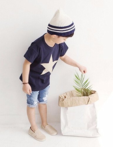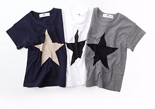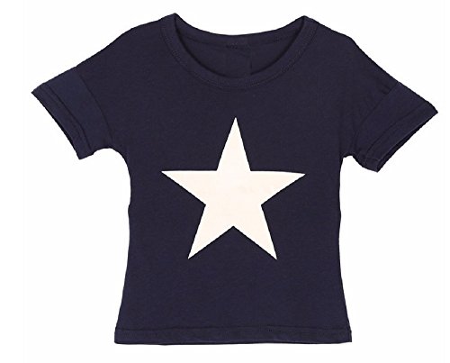 星柄Tシャツ ベビー服 キッズ服 子供服 男女兼用 (90cm, ネイビー)