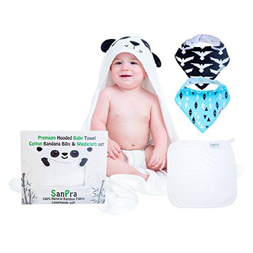 プレミアムソフトベビーフード付きタオル、コットンバンダナBibs &ウォッシュクロスセット| 100 %竹と低刺激性| Sized幼児用、幼児用|新しいパンダデザインのフード
