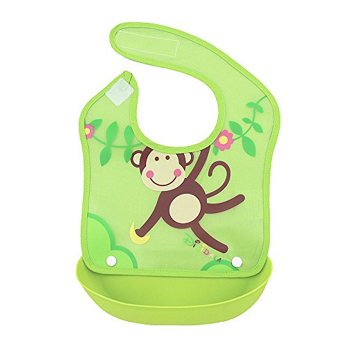 (Sandalup)ベビーエプロン 赤ちゃん よだれかけ かわいい ビブ スタイ 出産祝い マジックテープ 食事エプロン (グリーンモンキー)