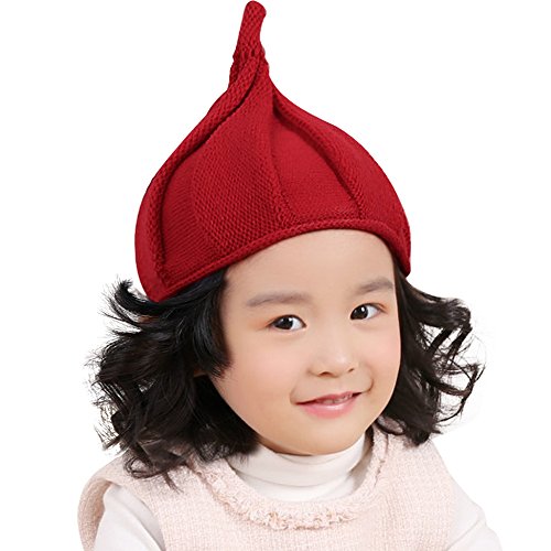 (Sandalup)ニット帽 キッズ帽子 ボウシ キャップ かわいい 赤ちゃん 子ども とんがり(レッド)