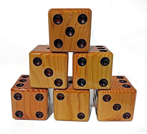- Solid wood yard dice with recessed dots, just like game dice